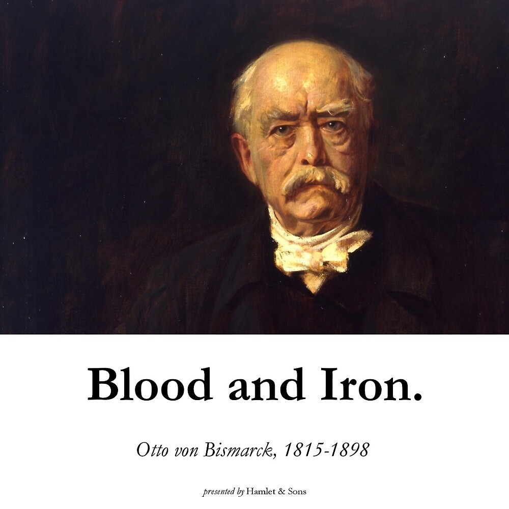 The position of Prussia in Germany will not be determined by its liberalism but by its power [...] Prussia must concentrate its strength and hold it for the favourable moment, which has already come and gone several times. Since the treaties of Vienna, our frontiers have been ill-designed for a healthy body politic. Not through speeches and majority decisions will the great questions of the day be decided—that was the great mistake of 1848 and 1849—but by iron and blood (Eisen und Blut).